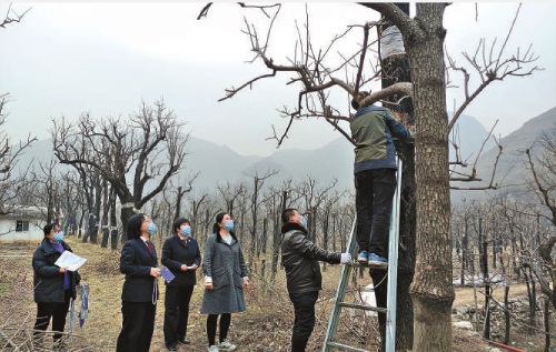 近日,河北省保定市满城区检察院会同该市自然资源和规划局满城区分局开展古树名木保护情况“回头看”。据了解,该区柿树资源丰富,登记在册的古树有78棵,1000年树龄以上的有12棵,500年树龄以上的有9棵。图为检察干警与工作人员正在对14棵古树进行挂牌保护。