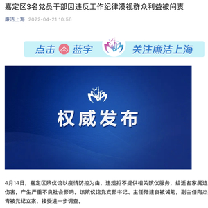 嘉定区3名党员干部因违反工作纪律漠视群众利益被问责