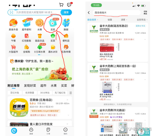 能搜到目前上海所需药品的药店列表,然后打电话过去问,如果药店说要是有人能去取就可以给,就找跑腿和闪送去取药。