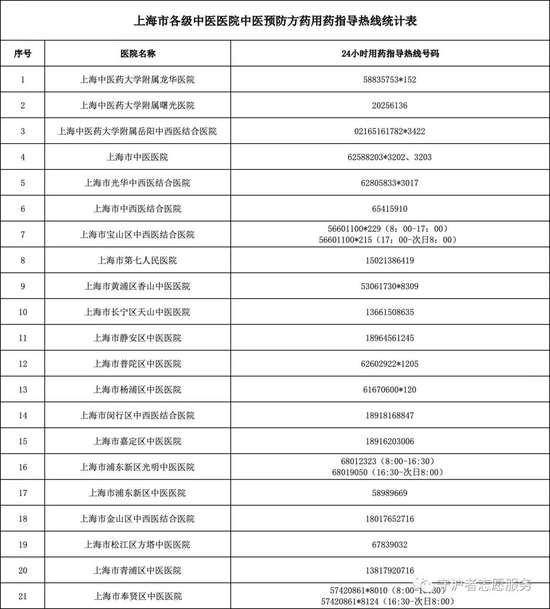 上海各级中医医院中医预防方药指导热线(4.12更新)