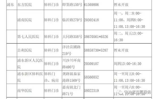 [浦东]肺科医院(门诊:仅面向浦肺患者,周一、三、五上午)、东方医院开诊(门诊:周一、三、五上午)。建议患者持48小时内核酸。