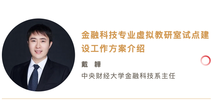 我校金融科技系系主任戴韡副教授介绍了金融科技专业虚拟教研室试点建设工作方案,从教研室建设的必要性与可行性,以及建设目标与预期成果等四个方面做了详细阐述。他指出,未来教研室建设内容与核心工作任务有很多,包括构建跨地域多层次的网络教学组织、夯实金融科技的专业教研课程、建设共享数字资源库、搭建专业教师的长期成长平台等,同时后续教研室的组织保障和组织建设也非常重要。