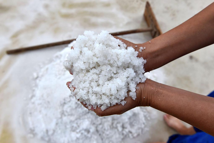 天日晒盐 自然结晶 集工捞采