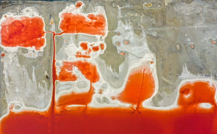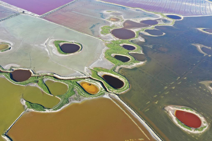 俯瞰山西运城盐湖一角。