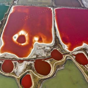山西运城盐湖的芒硝结晶池。