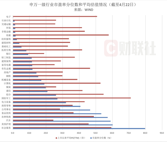 财联社记者梳理了行业估值,大部分行业低于历史均值。截至2022年4月22日,31个申万一级行业中,仅有社会服务、美容护理、汽车、农林牧渔、食品饮料5个一级行业的估值分位数超过50%,这五个行业估值均超过历史均值,其中社会服务更是高达79.7%。而国防军工、计算机、有色金属、医药生物、非银金融行业估值明显低于历史均值,行业估值分位分别为26.9%、19%、11.8%、8.1%、1.4%。但值得注意的是,估值、资金和行为层面的信号仅起到辅助判断作用。