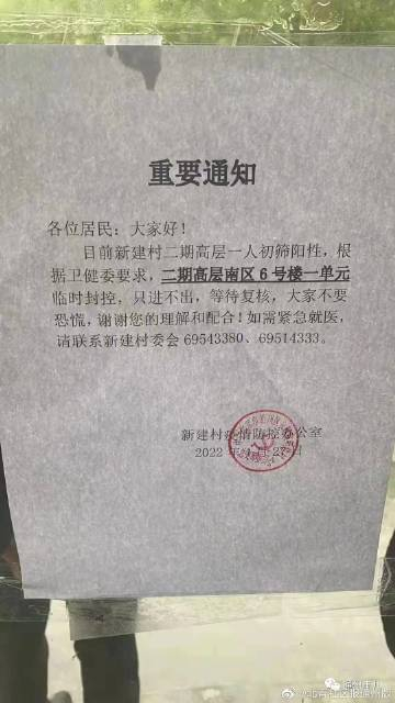5、土桥Plus小区核酸阳性1例 临时封控