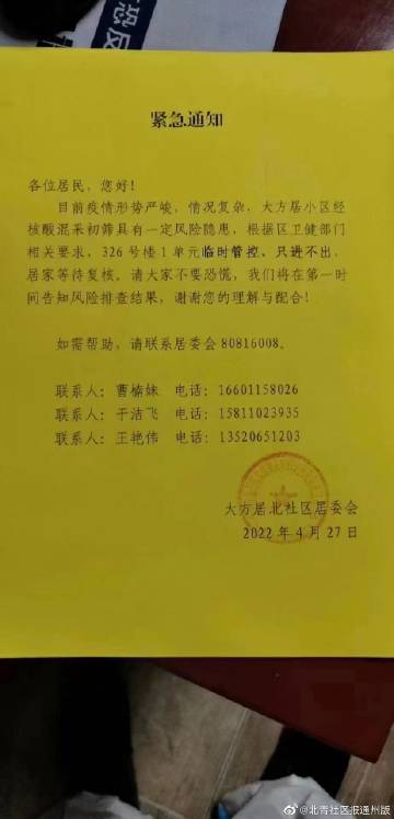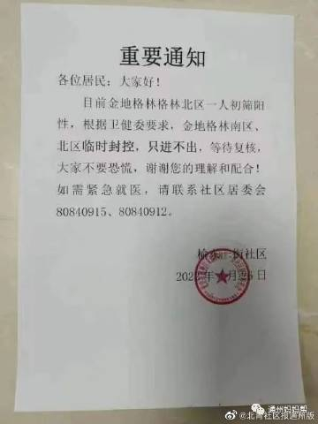 最新速报!北京通州小区临时封控名单