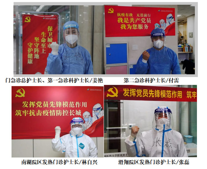 疫情发生以来,姜艳身先士卒,带领护理团队中党员、积极分子、护理骨干奋战在抗疫一线,严把医院南湖院区急危重症第一道关口——预检分诊,严格做好来诊患者流调与排查工作。