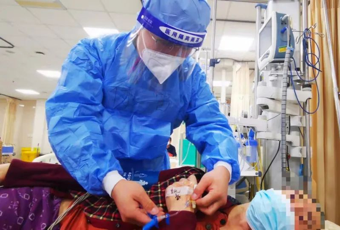 3月27日晚,大东区一名从事冷库维修工作的中年男子氟利昂中毒,转运至盛京医院南湖院区第一急诊科。姜艳果断将患者转至急诊隔离区,并率先做好防护进入隔离区,在等待患者核酸检测结果的同时,及时组织抢救工作。患者来诊时瞳孔散大、气管插管中,身上多处冻伤、水泡,皮温极低,身上的衣服沾满了泄漏后的液态氟利昂。姜艳第一时间为患者去除原来衣物,并带领团队及时为患者采取保暖措施,清洁、保护皮肤,做好呼吸机辅助通气、血液净化相关准备。迅速反应和担当精神让患者家属感动不已:“真是巾帼不让须眉啊,关键时刻,这女同志一点也不害怕,还冲在最前面!”