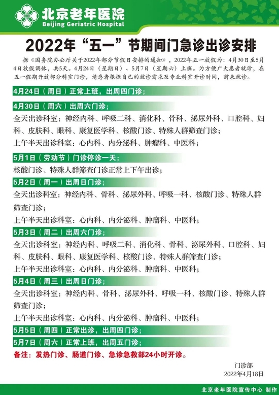 有新变化!北京22家市属医院五一假期门急诊安排出炉