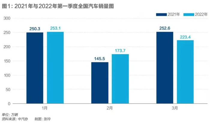 乘联会数据显示,主要厂商3月第三周、第四周的日均市场零售量分别为3.5万辆、3.9万辆,同比下降近30%。中汽协数据显示,3月乘用车产销188.1万辆和186.4万辆,同比下降0.1%和0.6%,今年一季度汽车产销分别完成648.4万辆和650.9万辆,同比增长2.0%和0.2%。