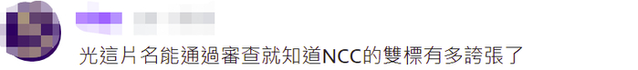 有网友认为,光这片名能通过审查就知道台湾地区通讯传播委员会(“NCC”)的双标有多夸张了。↓