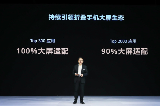 目前在华为Mate Xs 2当中,Top 300应用已经实现了100%大屏适配, Top 2000应用实现90%大屏适配,生态应用体验逐渐大成。