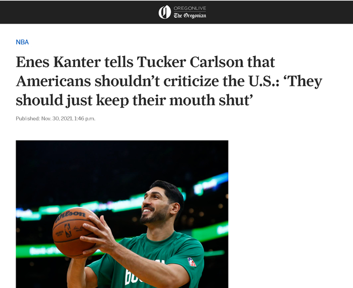 然而,在NBA数百名球员中,来自美国波士顿凯尔特人队恩尼斯·坎特(Enes Kanter)却是一个十足的怪胎,因为他在乎的似乎并不是打篮球,而是搞政治——他不仅发表过支持“疆独”和造谣中国新疆政策的贴文,还在去年与一群美国民粹右翼保守派一起找茬抗议美国种族主义问题的黑人球员勒布朗·詹姆斯,质问后者为什么只知道批评美国,却不去攻击中国。