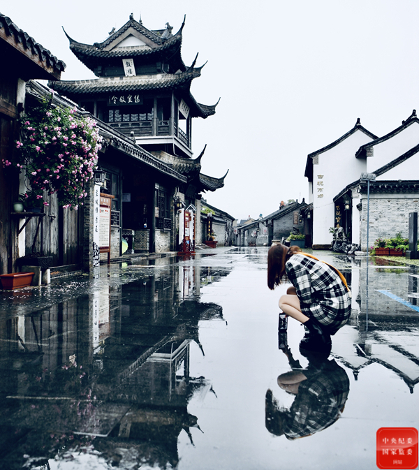 立夏前夕,风儿因为蔷薇的盛开而带着阵阵幽幽的清香,它沿着江苏高邮的馆驿巷轻轻吹过,清馨的芳香弥漫了盂城驿门前的整条小巷。雨后,一个年轻的女孩拿出手机,拍下最美的初夏风景。(江苏省高邮市纪委监委供 刘春芬 摄)