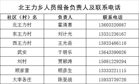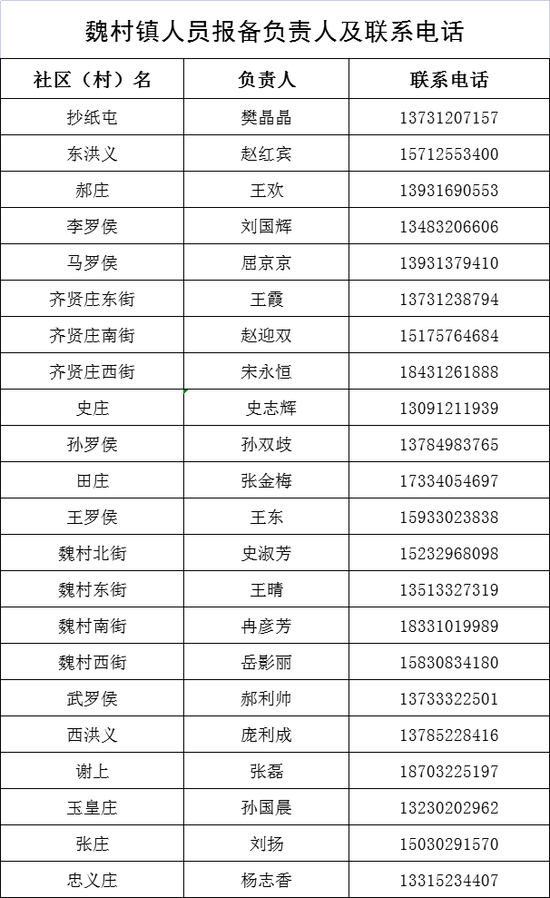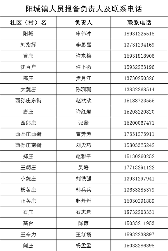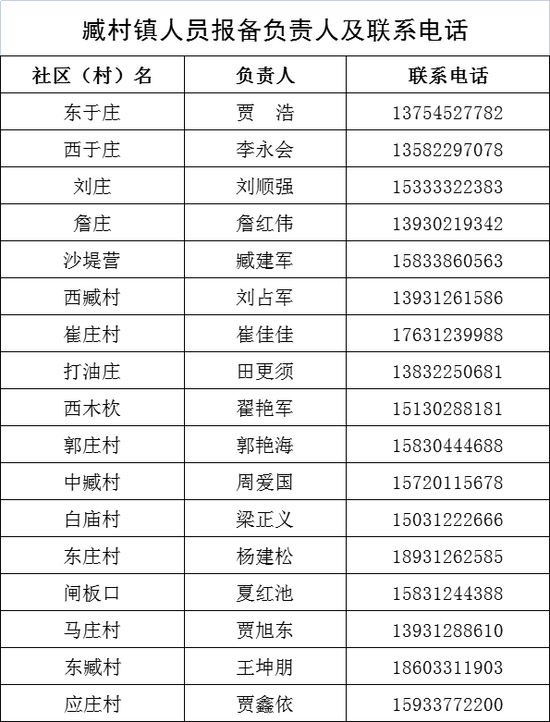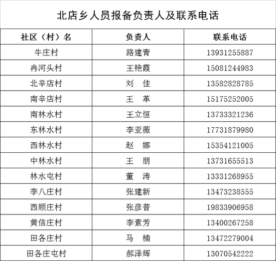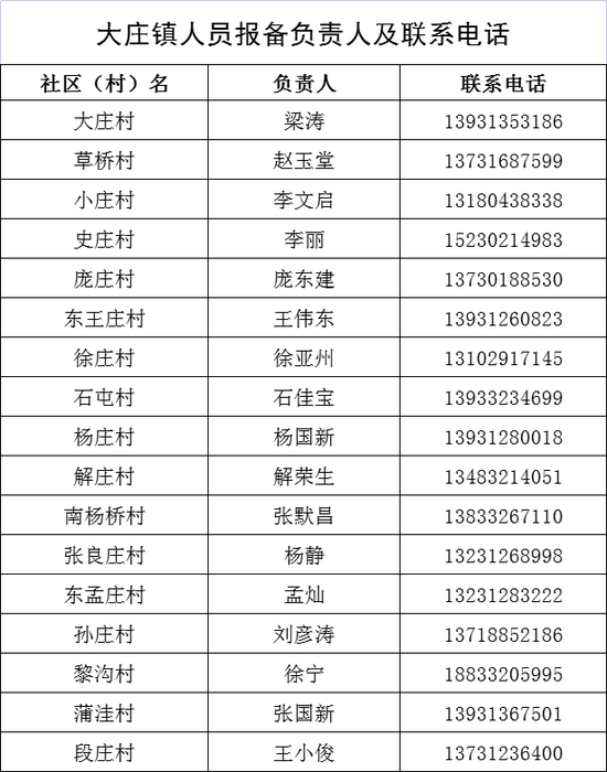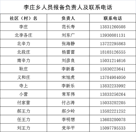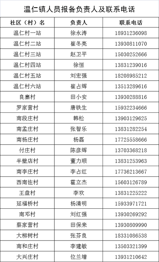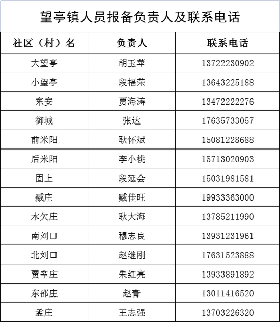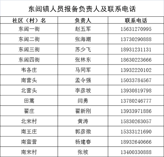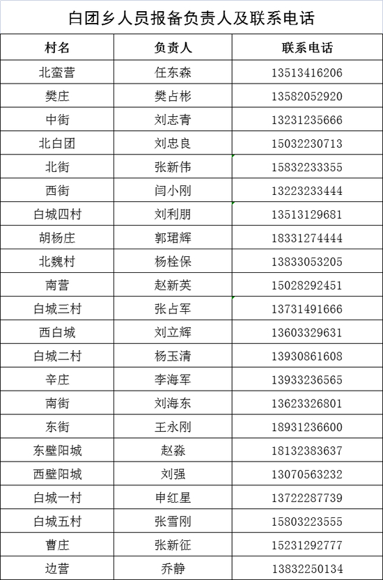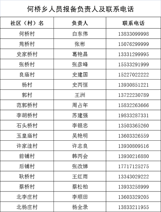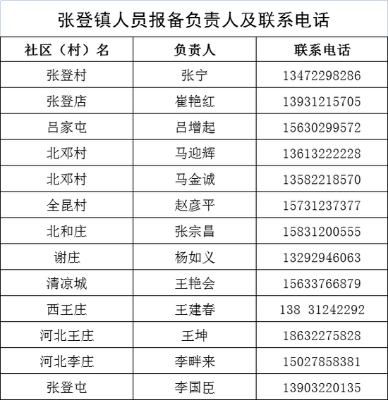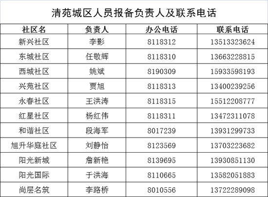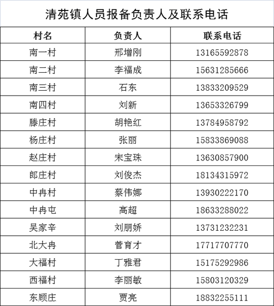 保定市清苑区来返人员报备联系人及联系电话
