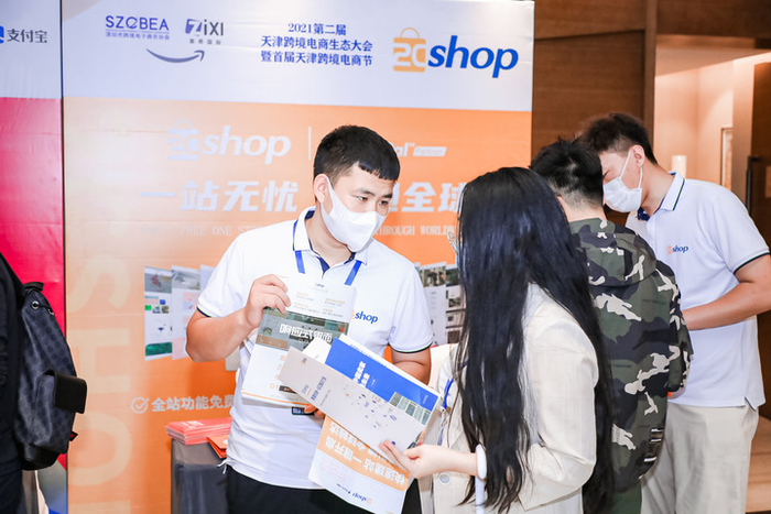 2021第二届天津跨境电商生态大会暨首届天津跨境电商节在津举办期间,跨境电商工作者在会上交流(2021年9月24日摄)。受访者供图