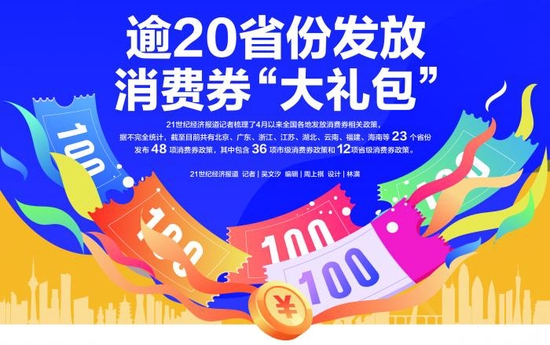 21世纪经济报道记者梳理了4月以来全国各地发放消费券相关政策,据不完全统计,截至目前共有北京、广东、浙江、江苏、湖北、云南、福建、海南等23个省份发布48项消费券政策,其中包含36项市级消费券政策和12项省级消费券政策。