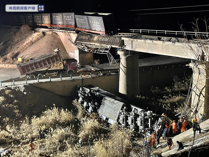 相关报道:甘肃靖远一火车车头脱轨坠落 目前有3人被困(央视)