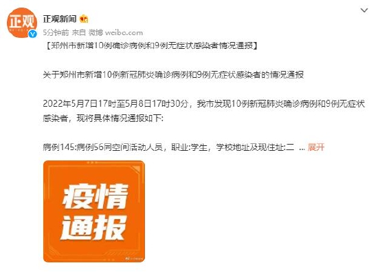 关于郑州市新增10例新冠肺炎确诊病例和9例无症状感染者的情况通报