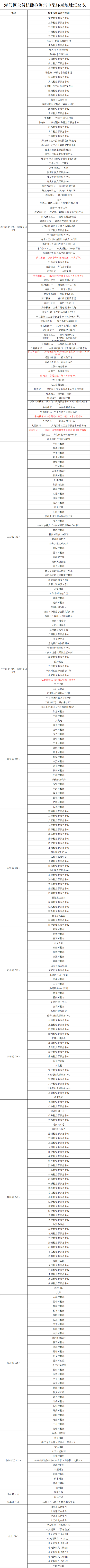 附件:海门区全员核酸检测集中采样点地址汇总表
