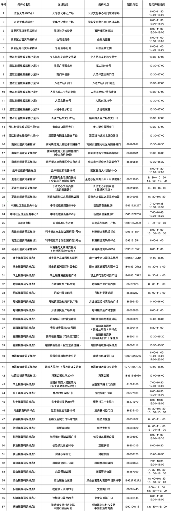 附:江阴市“黄码”人员核酸检测专用采样点(2022年5月9日更新)