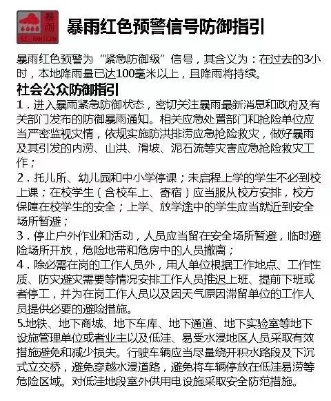 ▲暴雨红色预警防御指引