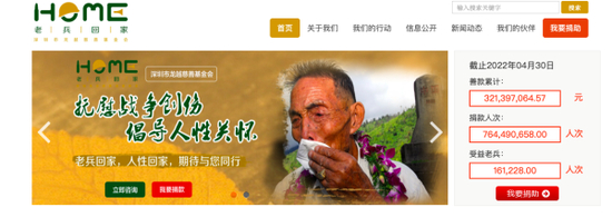 深圳市龙越慈善基金会官方网站显示,截止2022年4月30日,该基金会获得善款累计达3亿元,捐款人次超7亿,受益老兵为16余万人次。据其官方账号称,该基金会已经成为全国关爱抗战老兵人数最多的公益组织;建立了国内最大的战争失踪群体数据库;搜集整理汇编了最全的抗战阵亡将士名录;在缅甸、中国收殓、采样数千具英烈遗骸,并修建纪念碑及墓地;为全国14个省市的烈士父母送去关怀礼包、定期陪伴服务、扫墓心愿及节日陪伴。
