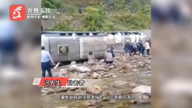 重庆城口坠河大巴内乘客1死1重伤 目击者:疑似下雨打滑导致