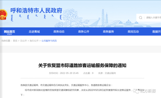 最新!呼和浩特恢复盟市际长途客运服务