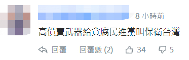 也有网友讽刺,“高价卖武器给贪腐(的)民进党叫保卫台湾”。↓