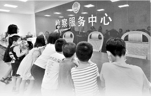 闽清:“六一”前夕,检察官邀请小学生代表参观12309检察服务中心。