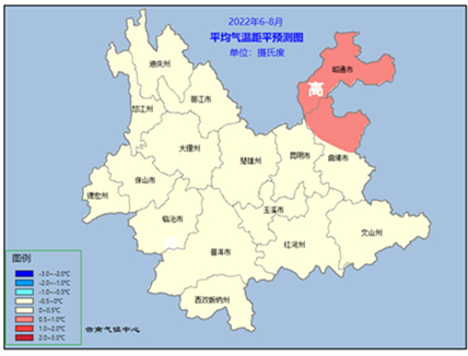 据云南省气象局消息,2022年主汛期(6~8月)气温全省大部地区正常略偏高,其中昭通市、曲靖市偏高0.5~1.0℃。全省大部地区7月下旬至8月气温为正常至偏高,无大范围抽扬期低温冷害天气出现。