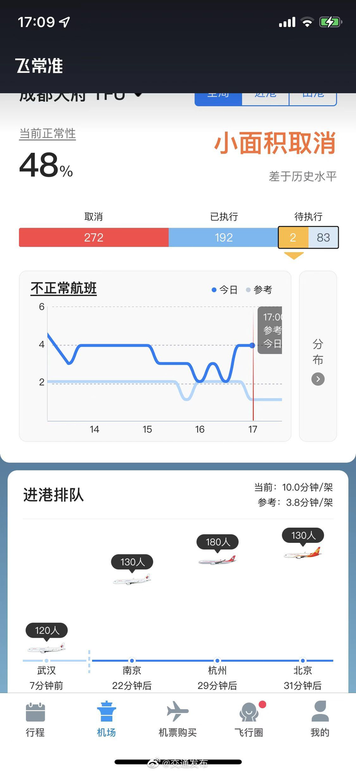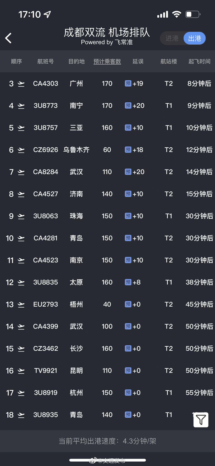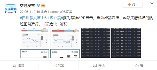 #四川雅安芦山6.1级地震#据飞常准APP显示,当前成都双流、成都天府机场的航班正常运行。(记者 刘玢妤)