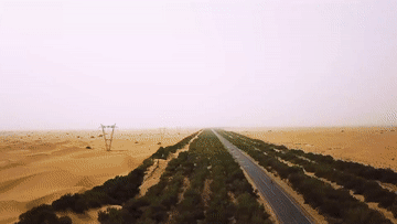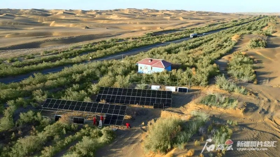 光伏电站掩映在塔里木沙漠公路生态防护林里。图由塔里木油田提供