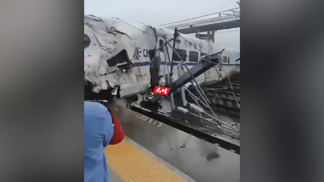 榕江车站附近居民拍摄的视频显示,D2809次列车的车头损毁严重,车头冲上了站台,部分列车车厢脱离轨道。