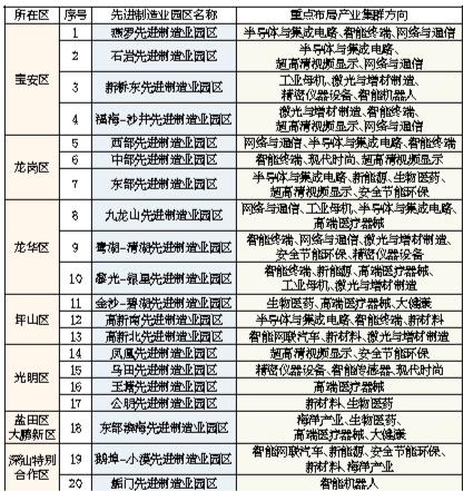 深圳20大先进制造业园区及其布局方向