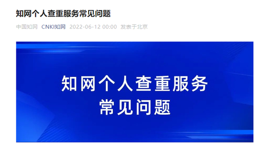 此外,知网还发布《知网个人查重服务常见问题》,就开放个人查重原因、开放人群、收费标准、论文上传后的安全性等问题,回答公众关切。