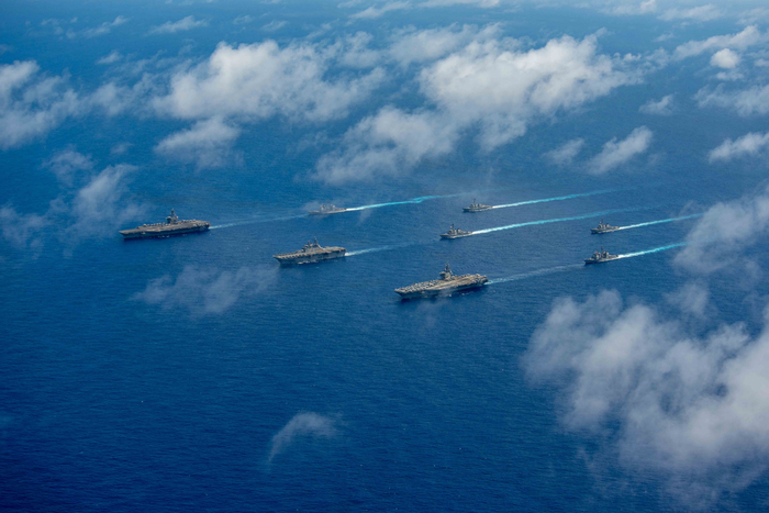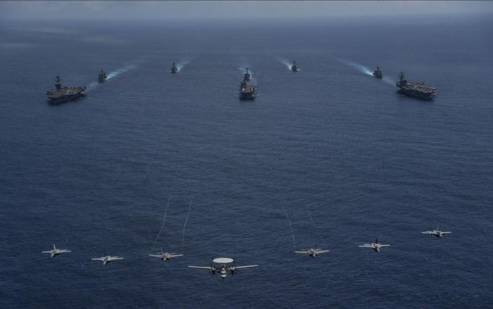 在菲律宾海举行3航母大演习的美军海军编队 图源:美国海军