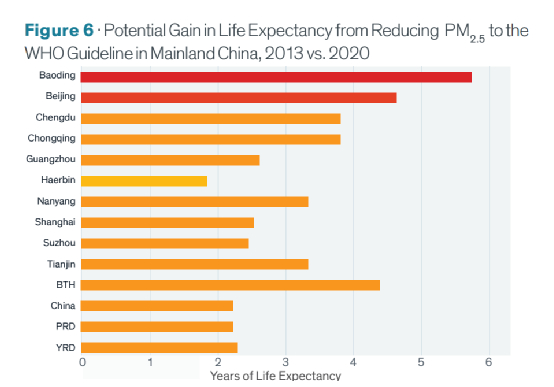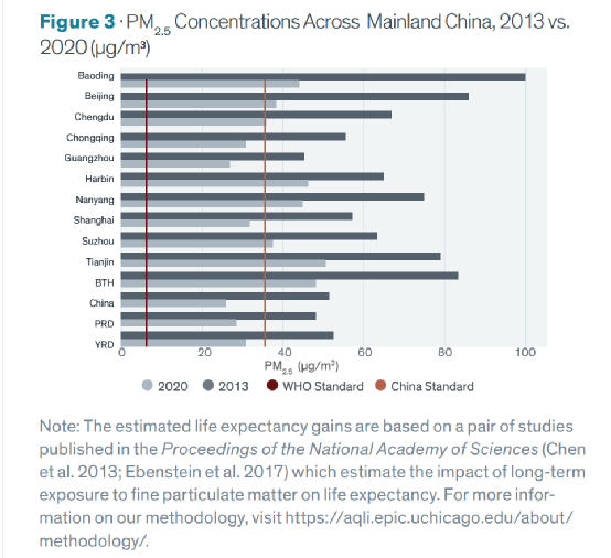然而,报告也不忘地提醒中国说,虽然中国在应对空气污染上确实取得了很大的进步,但中国2020年时的空气污染水平仍然是世界卫生组织建议标准的6倍,中国首都北京的污染程度仍然比美国污染最严重的城市洛杉矶要严重3倍。