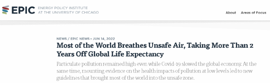 而从这篇报道的正文来看,彭博社对中国的正面肯定,实则源自美国芝加哥大学能源与环境政策研究所在当地时间6月14日发布的一则分析文章。此文一方面评估了空气污染给人类预期寿命带来的影响,一方面则谈及了世界各地在应对空气污染方面做出的努力。