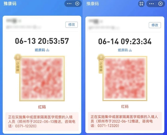 同样的情况也发生在秦虹身上,她是吴女士投诉时的同行者,她的豫康码一样在6月12日这天变成了红色。秦虹家中不仅有个即将手术的病重老人,还有一个需要参加重要考试的学生,红色豫康码无疑给这个家庭造成了不小的困扰,秦虹无法将家中老人送至医院就医,也无法送孩子参加考试。