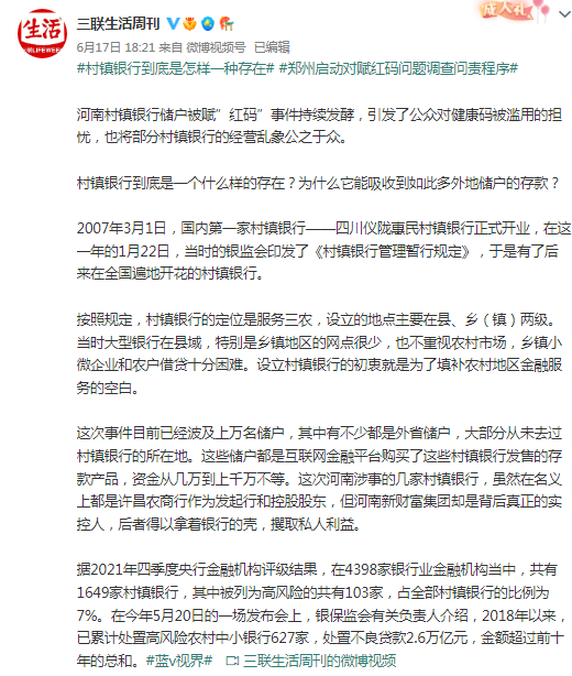 河南“红码风波”中的村镇银行,到底是个什么存在?