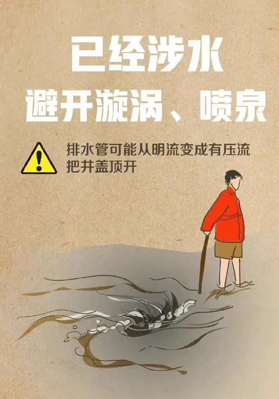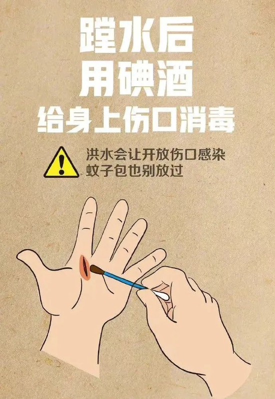 洪水进屋、被困、涉水出行、皮肤划伤等情况