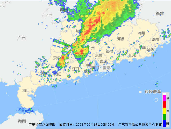19日,韶关、清远、河源、珠江三角洲北部市县有暴雨到大暴雨,局部特大暴雨,珠三角其余市县、梅州、茂名有大雨到暴雨,其余市县有中到大雨,局部暴雨。