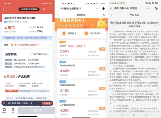 文中介绍,2020年11月开始,万先生在度小满等互联网平台以及银行微信小程序,陆续购买了禹州新民生村镇银行、开封新东方村镇银行、柘城黄淮村镇银行发行的存款产品,4月发现这些存款无法提现了。