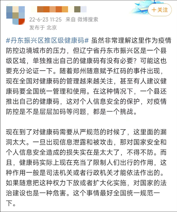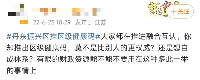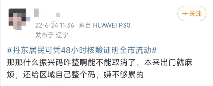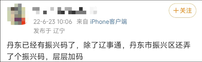 有些网友则认为,振兴区此举与全国正在推行的健康码融合互认背道而驰,甚至有违反国务院多次强调的“疫情防控不得层层加码”的嫌疑。