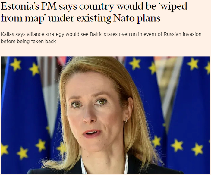 “根据北约目前的防御计划,爱沙尼亚将从地图上消失,首都的历史中心将被夷为平地,以抵御俄罗斯的任何袭击”,爱沙尼亚总理卡贾·卡拉斯这样说。