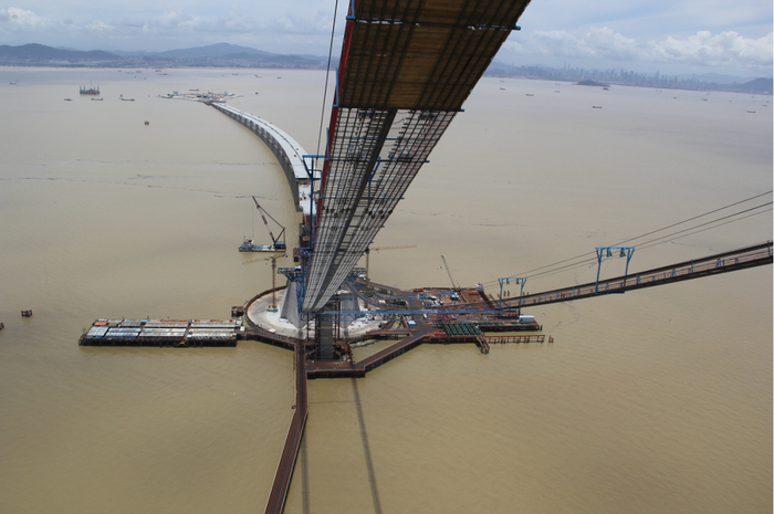 在建的伶仃洋大桥至今已创下了全海上施工的三项“世界之最”——世界最大跨径海中钢箱梁悬索桥,世界最大海中锚碇,世界最高海中大桥。